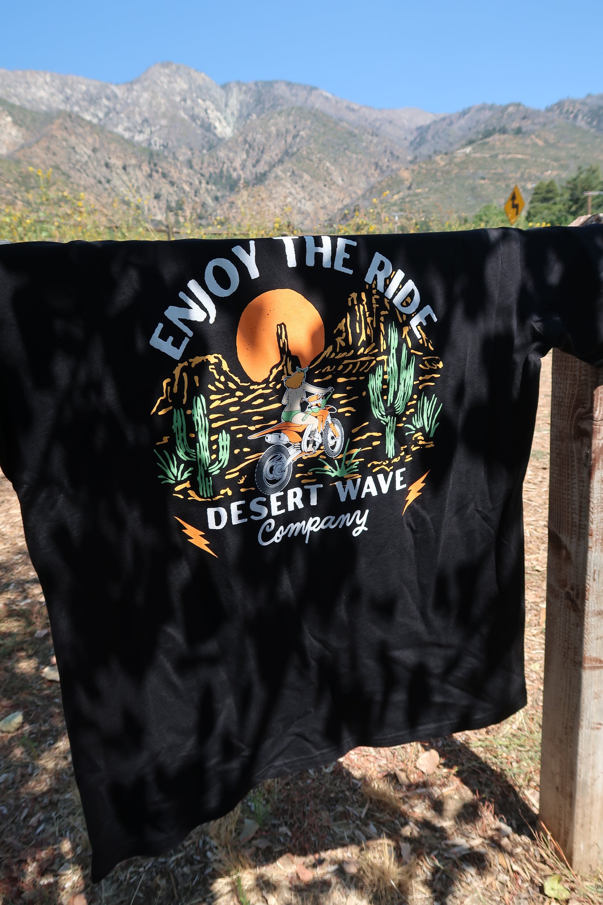 A bold, stylish tee featuring our enjoy the ride tee in the desert!