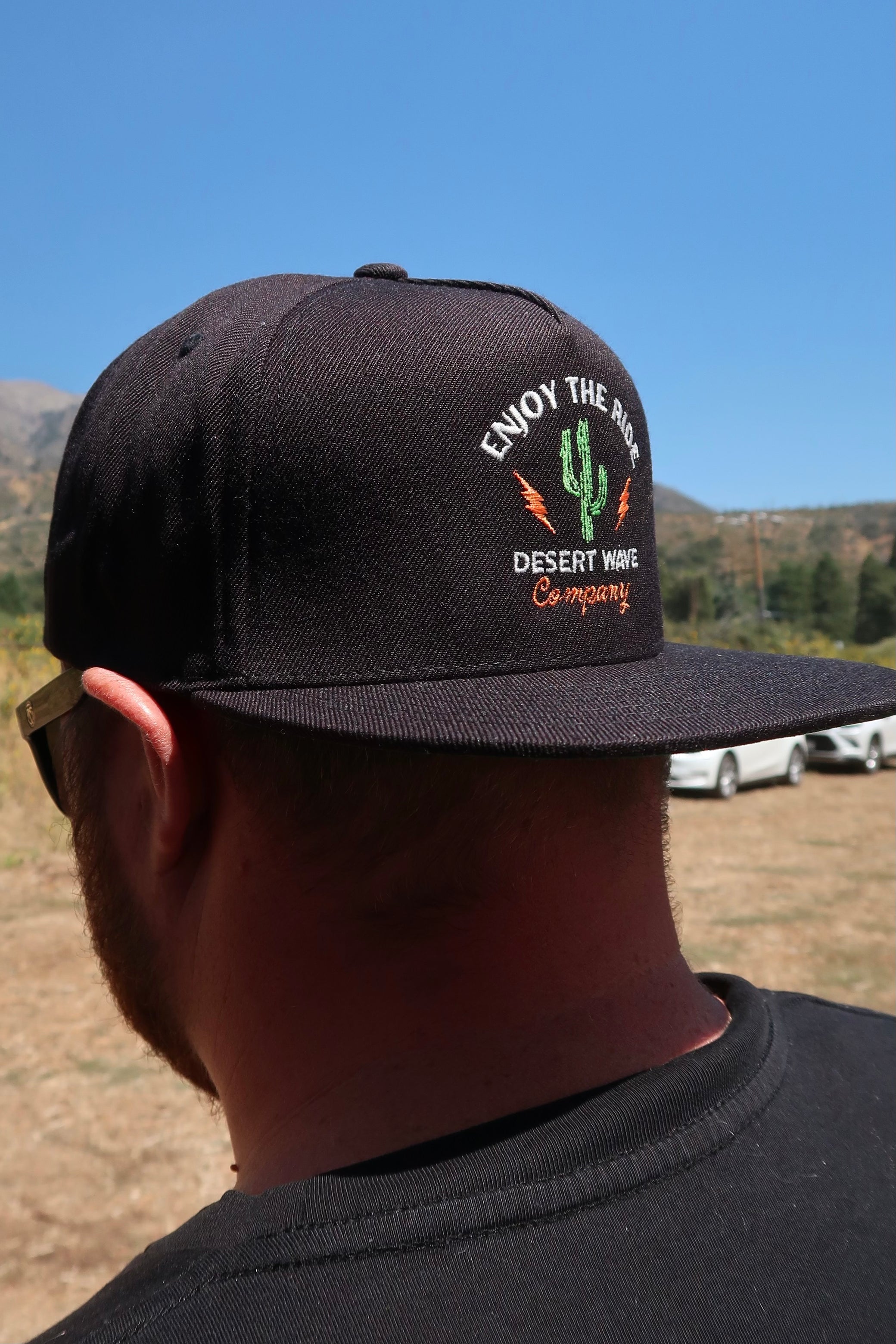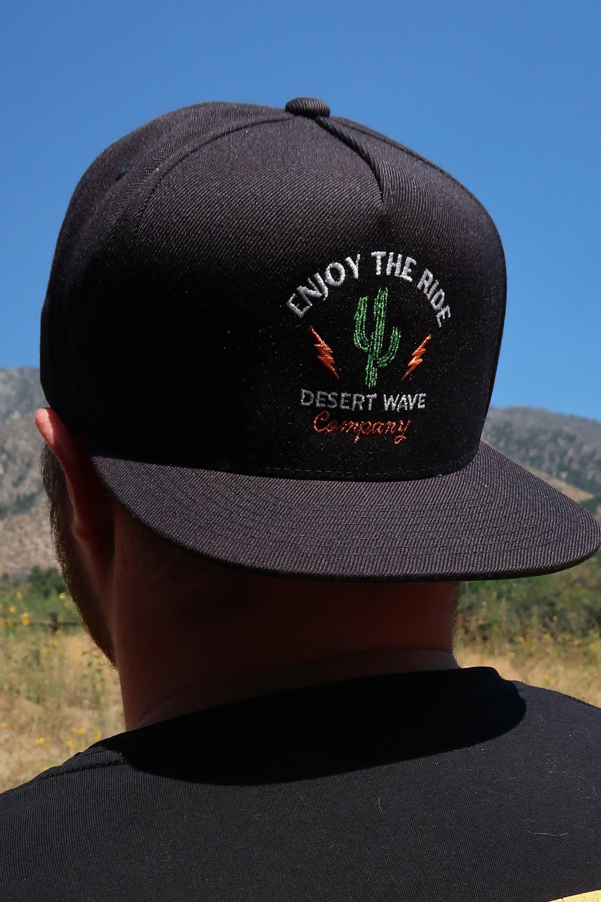 A sleek black cap featuring an embroidered cactus with lighting bolts.